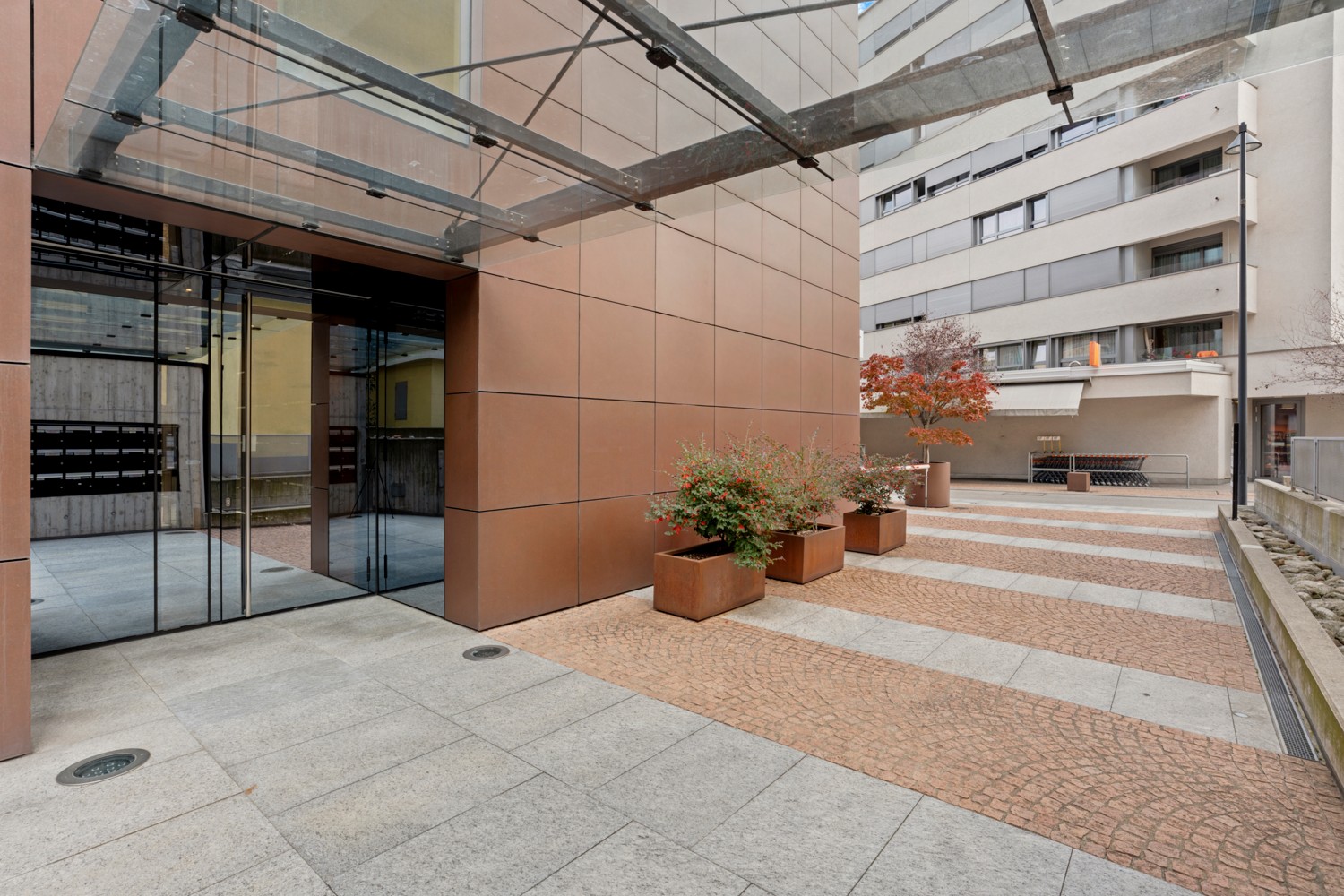 Of the obvious pluses, there are also supermarkets nearby. There is a Migros right in front of the building, and twenty meters away there is a Denner. And just around the corner, there is a Gluten Free food store.